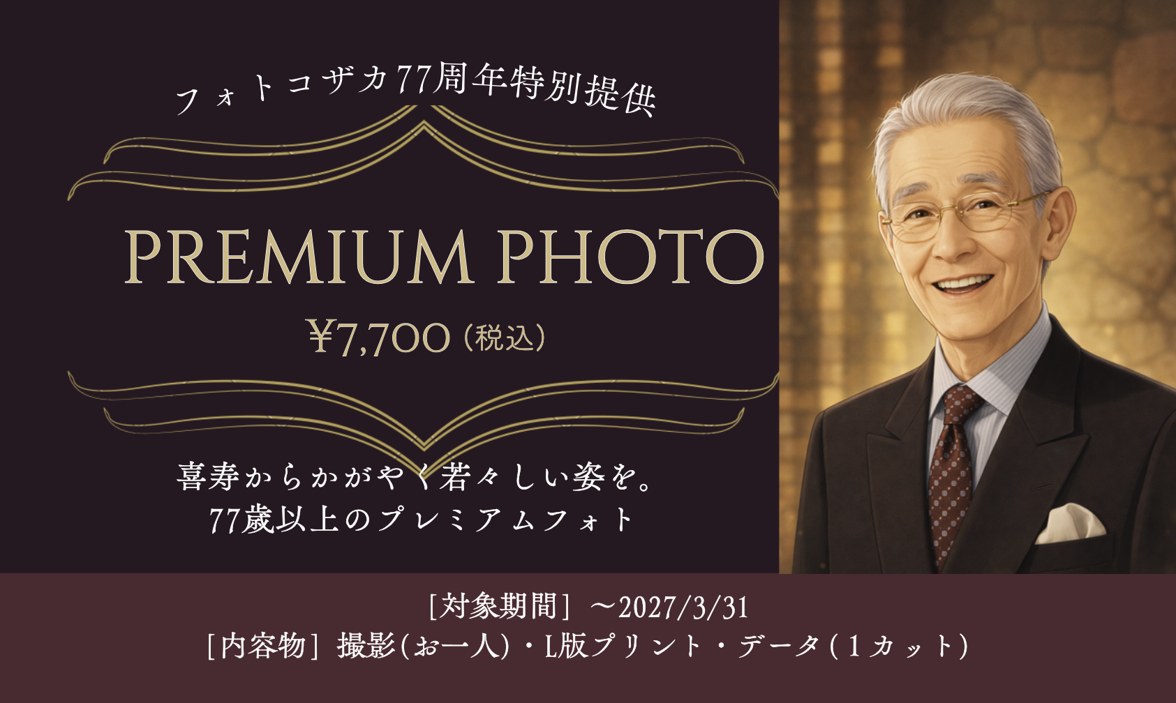 77歳以上の方対象 プレミアムフォトのご案内です|創業77周年の写真館フォトコザカ