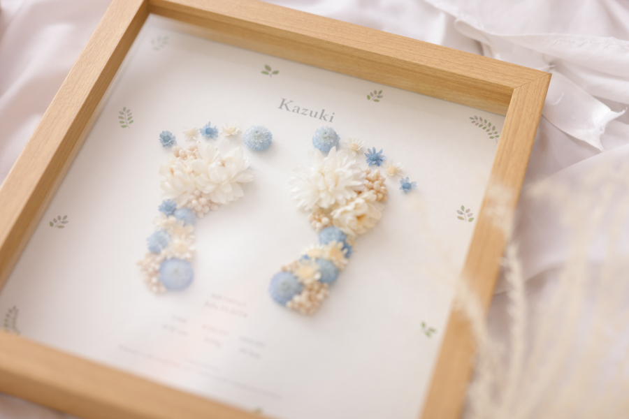 フレームの片面には赤ちゃんの実寸大の足形が入ります。